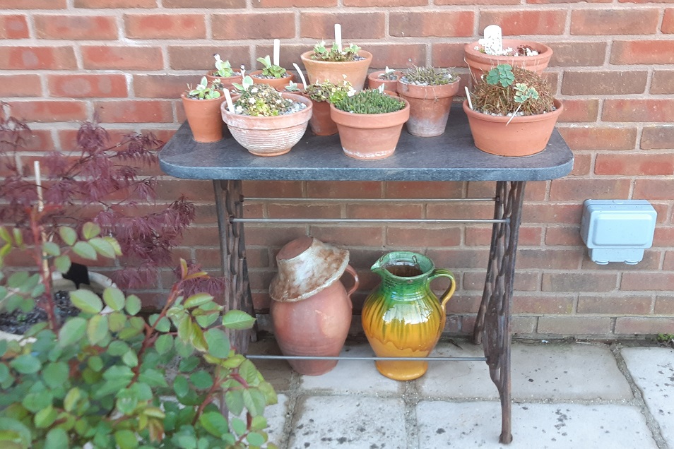 - Legs from an old sewing machine and a top from a kitchen worktop
